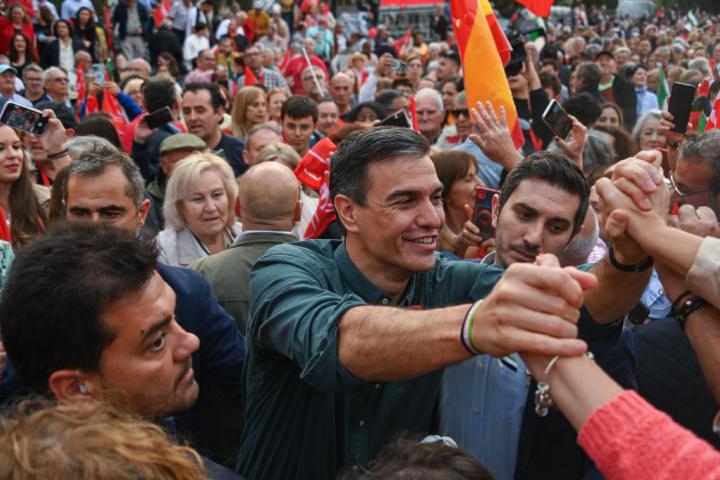 En Moncloa contienen la respiración. Lejos de esconderse, Sánchez se ha expuesto como nunca, recorriéndose toda España. La estrategia de campaña se diseñó hace meses: tras superar los escándalos por la sedición, la malversación o la reforma de la ley del sólo sí es sí, lo apostaron todo a la economía, las políticas sociales y el medio ambiente. “La economía es ahora es nuestra bandera y no la del PP”, sacaban pecho. El PSOE logró marcar la agenda las semanas previas al inicio oficial de la campaña. Sánchez hacía anuncios y el PP y el resto de partidos los comentaban, iban a rebufo.
