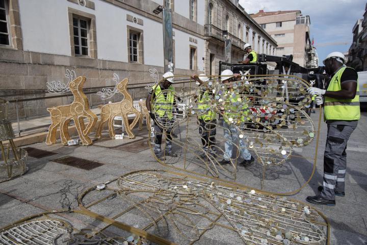 Vigo comienza a instalar las luces que decorarán 450 calles desde el mes de noviembre.
