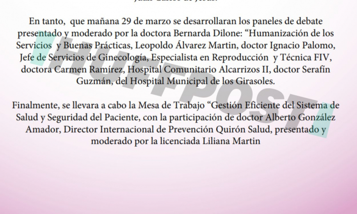 En concreto, se trataba de intervenir en la mesa de trabajo “Gestión Eficiente del Sistema de Salud y Seguridad del Paciente", en la que se cita a Alberto González Amador como "director Internacional de Prevención Quirón Salud".