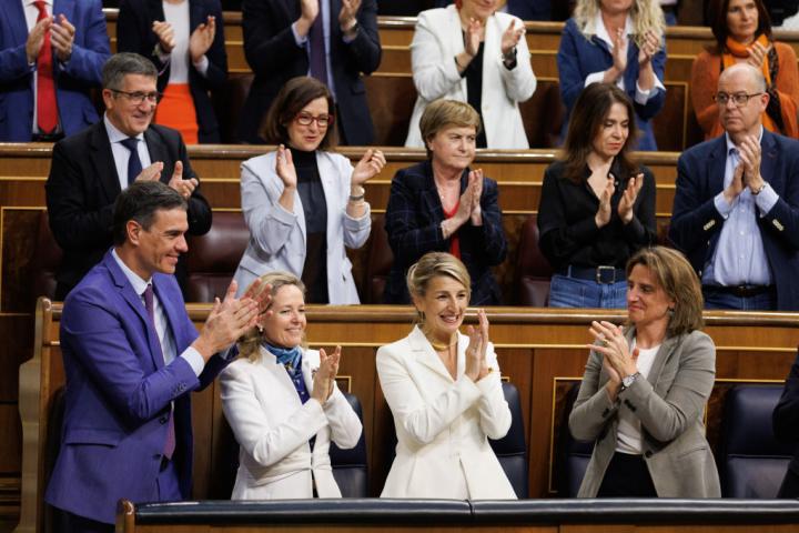Díaz cree que el discurso del profesor se ha construido "en torno a un enorme vacío": las mujeres. "Le doy la bienvenida a la España de 2023, le doy la bienvenida a la España de las mujeres. Las que están cambiando nuestro país. No se puede construir un país sin sus mujeres. Pienso también en las que ya no están, las que son víctimas de violencia de género. No intrafamiliar o doméstica. Mujeres que ya no toleran la subordinación al machismo. Esa que ustedes intentan perpetuar negándonos derechos tan básicos como decidir sobre nuestros cuerpos o nuestras vidas. Recluyéndonos, como se ha hecho aquí, en un rol de gestación, apartándonos de los lugares de decisión y arrebatándonos la palabra", ha dicho Díaz ante el aplauso de la bancada de la izquierda.