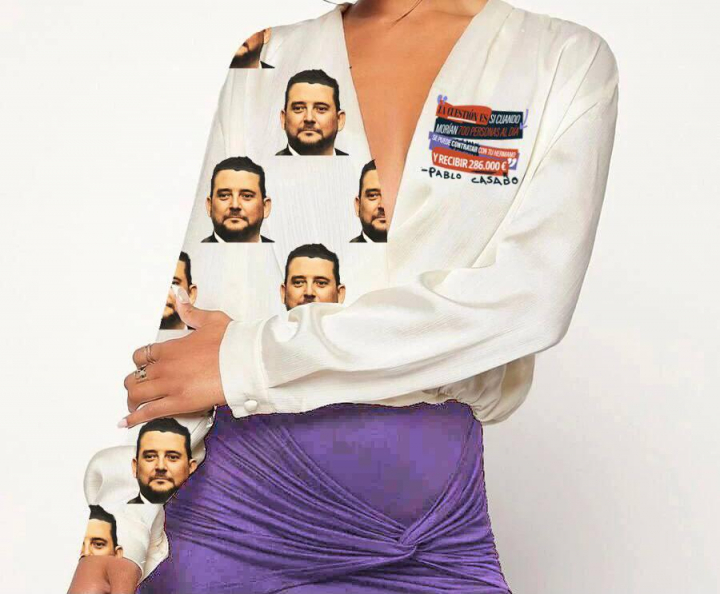 Esto es lo que se podía ver en la camiseta de la candidata de Podemos.