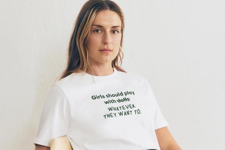 Parte de este proyecto es una camiseta solidaria cuyos beneficios van destinados a Save the Children. En ella aparece escrito: "Girls should play with dolls (Las niñas deben jugar con muñecas)" con la palabra dolls tachada y sustituida por "Whatever they want to (lo que quieran)". Una consigna que bien podría aparecer en cualquier pancarta del 8M, día que que en El HuffPost 'celebramos' con ella.