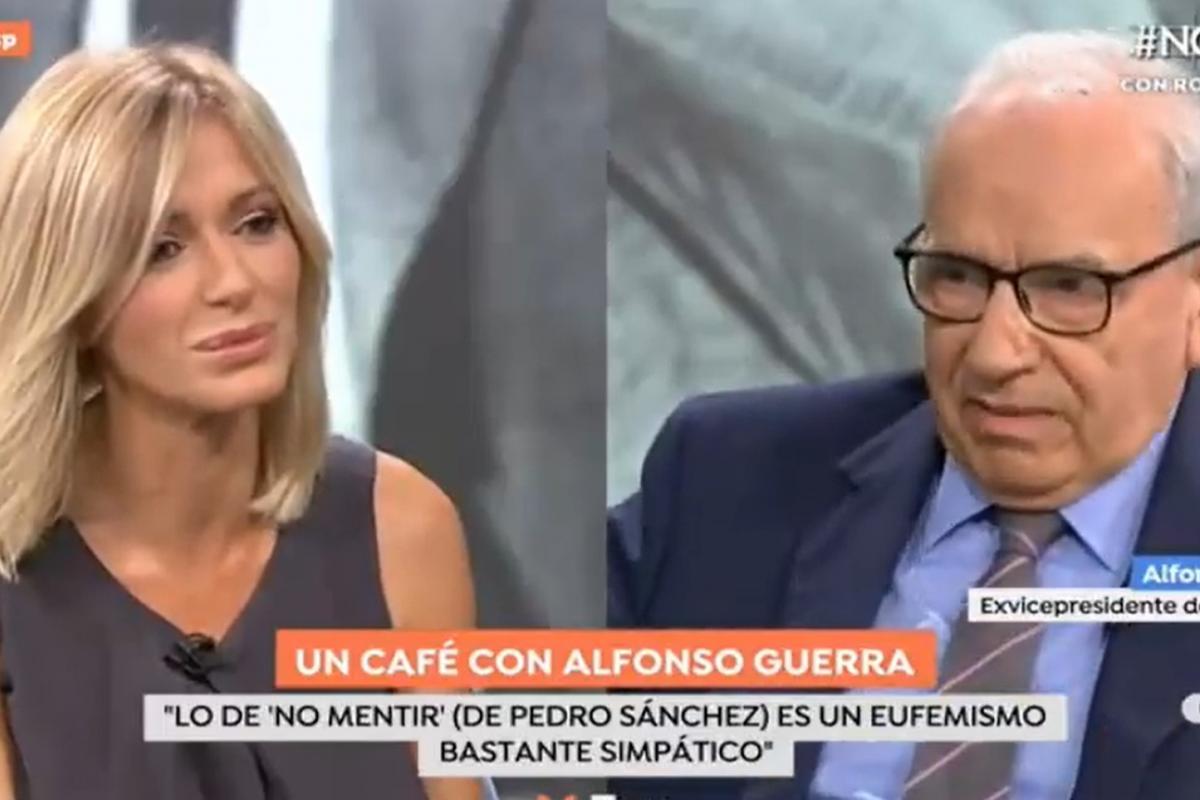Todo ha ocurrido durante una entrevista que el histórico dirigente socialista ha concedido al programa "Espejo Público" de Antena 3. En un momento de la conversación, Susanna Griso ha preguntado a Guerra por unas anteriores declaraciones de Díaz en las que afeaba al expresidente Felipe González su "falta de rigor político" a la hora de referirse a la amnistía.