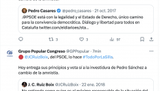 Tras saludar a Sánchez, el presidente del PP se ha dado la vuelta y ha abandonado el hemiciclo al tiempo que seguían los vítores de los diputados del grupo del PSOE. Después, ha publicado este tuit: "Pedro Sánchez logra una investidura cerrada en Waterloo. Lideraré la oposición defendiendo la igualdad de todos los españoles y ante el mayor ataque al Estado de derecho. La Historia no le amnistiará".