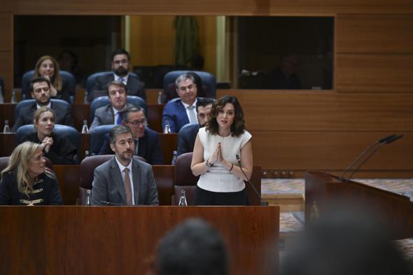 Ayuso defiende a su pareja en la Asamblea: "La montaña de corrupción es tan grande que un hilo dental no lo va a tapar"