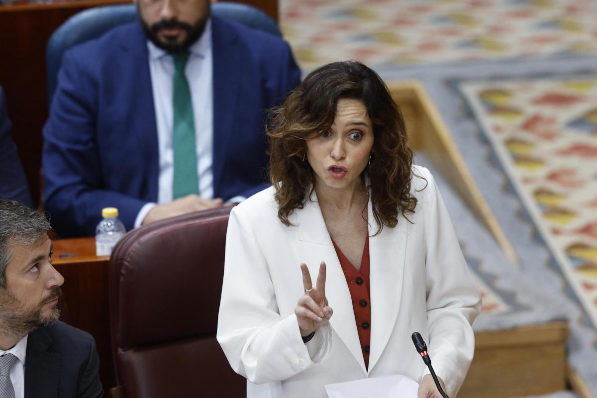 La líder de Más Madrid había reprochado unos minutos antes de las palabras de Ayuso que el PP recurriera las lonas colgadas con el número de fallecidos en residencias en la primera ola del Covid con reglamentos inventados y había sacado pecho de los estudiantes que se concentran en las universidades en contra del genocidio del primer ministro israelí, Benjamín Netanyahu en Gaza.