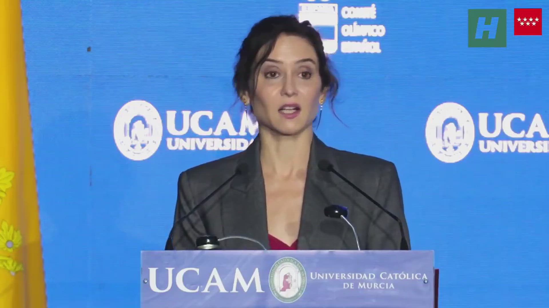 La presidenta de la Comunidad de Madrid ha comparecido este martes por motivo de la presentación del Centro de Educación Superior en Torrejón de Ardoz por parte de la Universidad Católica de Murcia.