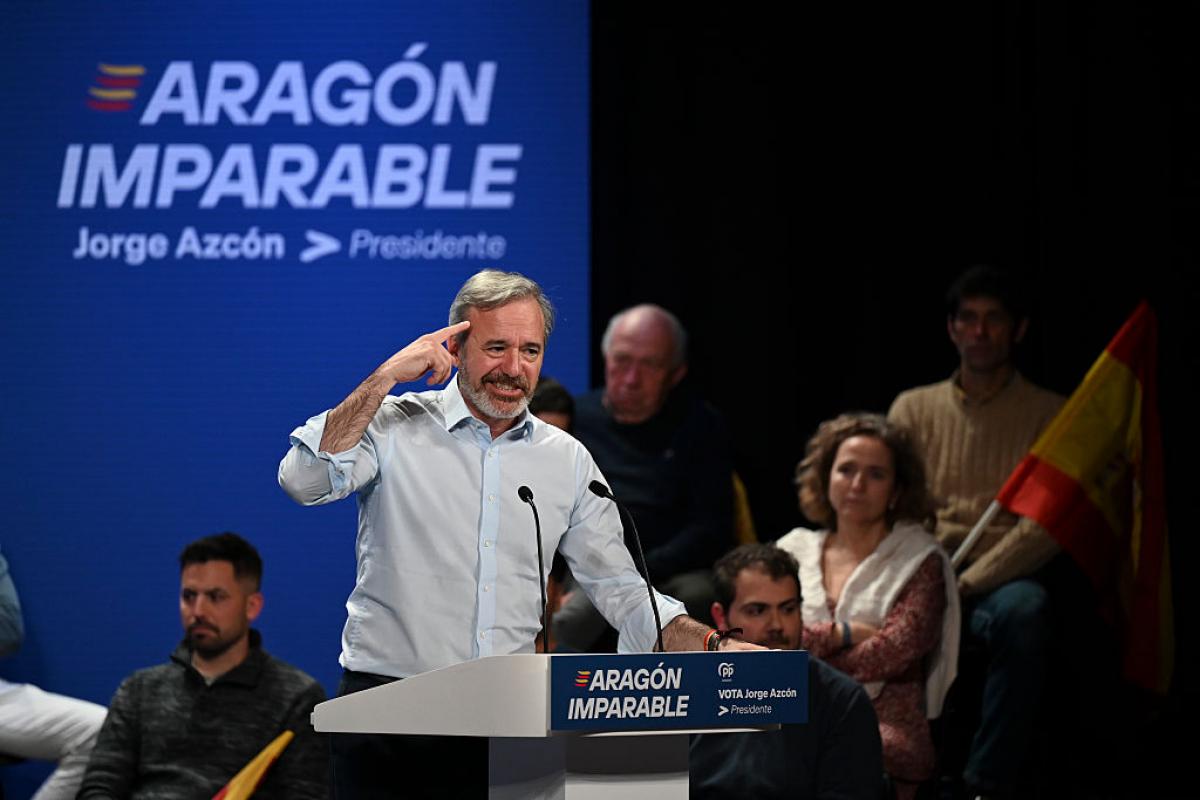 El candidato del PP a la presidencia de Aragón, Jorge Azcón, ha ganado este domingo las elecciones celebradas en su región, pero pierde dos escaños con respecto a su representación actual (de 28 a 26) y dependerá de Vox para volver a ser investido presidente.