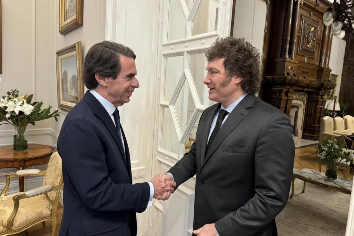 El presidente de Argentina, Javier Milei, recibió este jueves en la Casa Rosada al exjefe del Gobierno español José María Aznar (1996-2004), según informaron ambos en sus respectivas redes sociales.