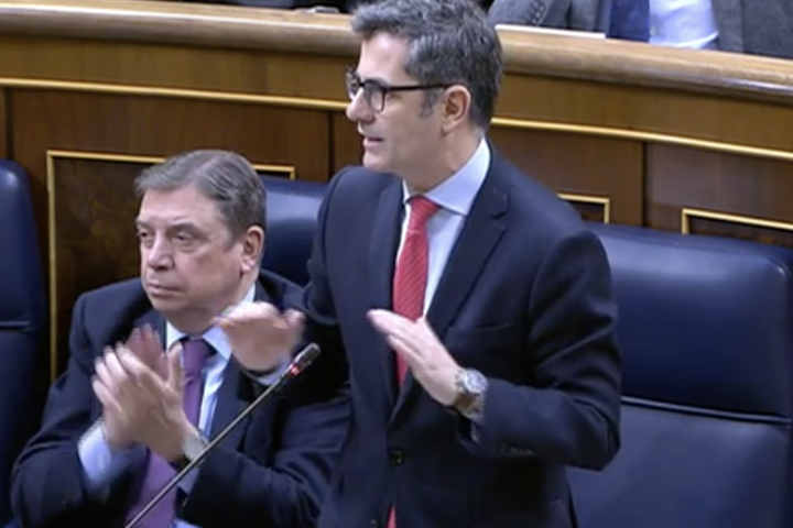Es miércoles y, después de un largo parón parlamentario, han vuelto las sesiones de control al Congreso de los Diputados. El ministro de Presidencia, Félix Bolaños (PSOE), antes de responder a la pregunta asignada, ha querido "condenar las palabras del líder ultraderechista de esta misma mañana" sentenciando su alegato con una clara burla.