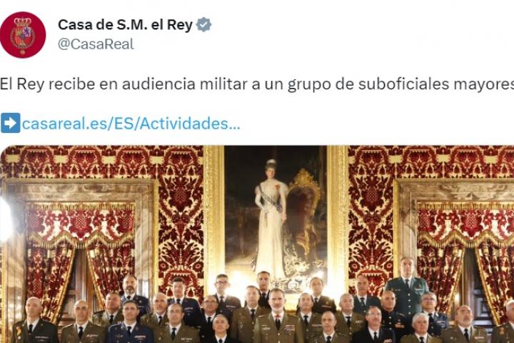 En la imagen compartida por Zarzuela, se ve al monarca español junto al grupo de suboficiales mayores, pero, en pleno Día Internacional de la Mujer, la imagen ha despertado una gran indignación, ya que en la instantánea no aparece ninguna mujer.