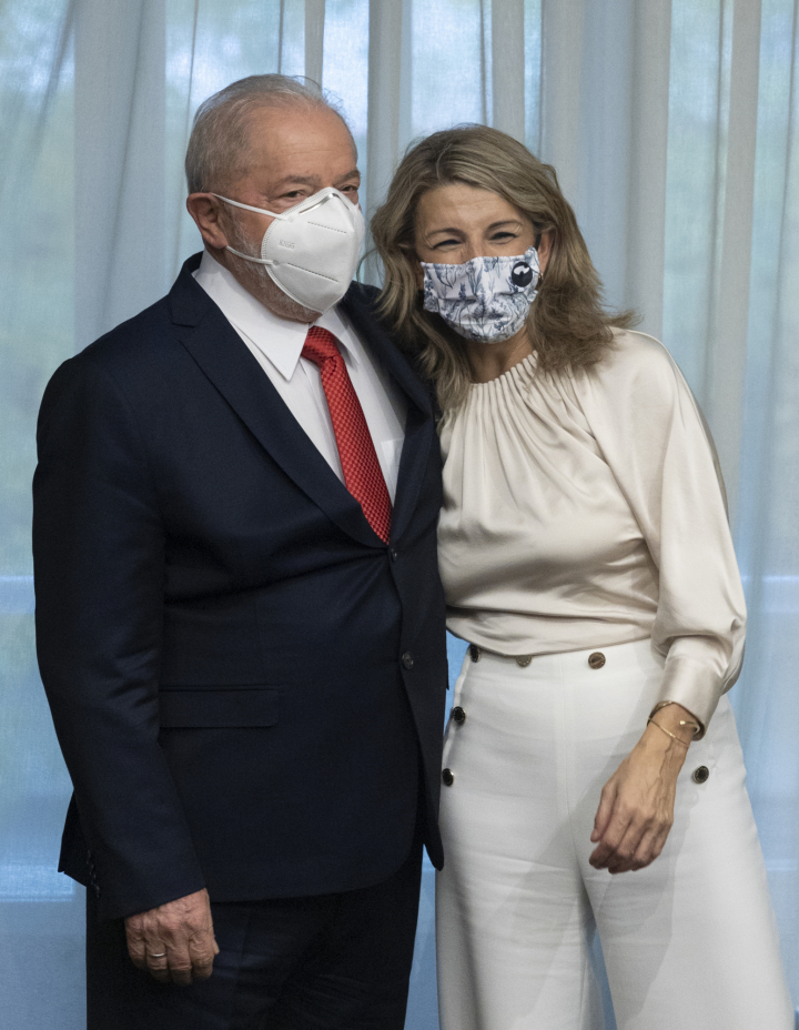 Lula, en sus dos días en España, acudirá a un seminario que congregará a empresarios brasileños y españoles, firmará varios anexos bilaterales, comerá en el Palacio Real con Felipe VI, trabajará en Moncloa con el presidente y puede, puede, que reúna además con la vicepresidenta segunda y ministra del Trabajo, Yolanda Díaz, con quien guarda una estrecha amistad. Ambos se vieron en Madrid el pasado año y la gallega fue a la toma de posesión del jefe de Estado brasileño el pasado 1 de enero.