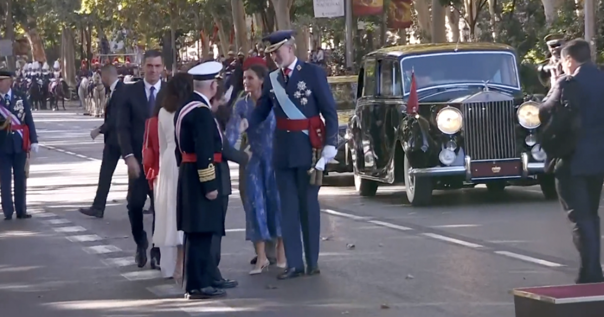 Unos cánticos que han sido los grandes protagonistas durante el saludo de Sánchez a Felipe VI, la reina Letizia y la princesa Leonor a su llegada a los actos del Día de la Hispanidad.