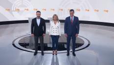 A lo largo de 90 minutos absolutamente cronometrados, Pedro Sánchez, Santiago Abascal y Yolanda Díaz han confrontado posturas, unos más que otros, en materias claves como economía, vivienda, empleo, igualdad, sanidad... pero también en los siempre esperados pactos postelectorales. Nada nuevo y, como era previsible, han sido campos de especial enfrentamiento entre bandos... aunque sin salirse de unas mínimas formas.