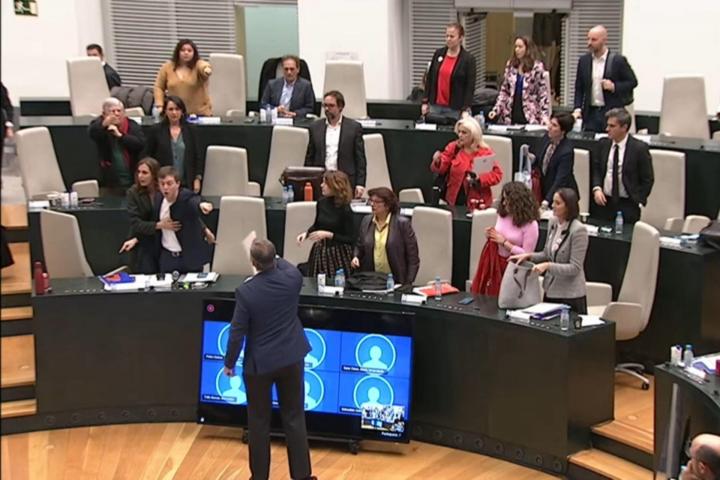 Según las imágenes, el dirigente se acercó con actitud violenta al escaño de su contrario y con unos papeles lanzó hacia su dirección una botella de agua. Todo el grupo municipal de Rubiño, con Rita Maestre a la cabeza, pidió sin éxito la amonestación a Ortega Smith por su comportamiento, pero el presidente del pleno, Borja Fanjul (PP), no lo consideró así y se limitó a darle la oportunidad de pedir disculpas.