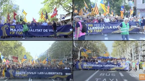 En esta ocasión, la manifestación parte desde cuatro puntos distintos de Barcelona (Estación de Sants, sede de Hacienda, Ciudad de la Justicia y Escuela Proa en el barrio de la Bordeta) para confluir en la plaza Espanya, donde a las 18:15 horas está previsto un acto político con parlamentos.