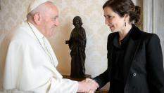 Durante el momento de los saludos con el pontífice, la dirigente madrileña ha sonreído nada más verle y le ha estrechado la mano, mientras le decía "Santidad, mucho gusto".