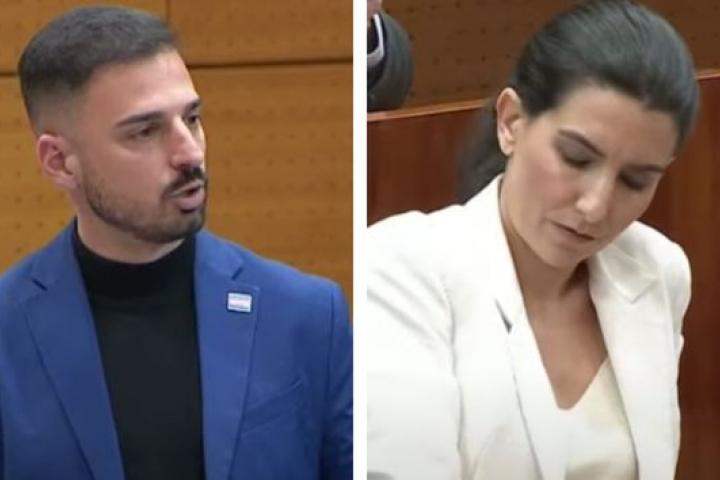 Santi Rivero, diputado del PSOE en la Asamblea de Madrid, ha dedicado 20 duros segundos mirando a Rocío Monasterio, de Vox, tras el discurso sobre las personas trans que ha pronunciado ella.