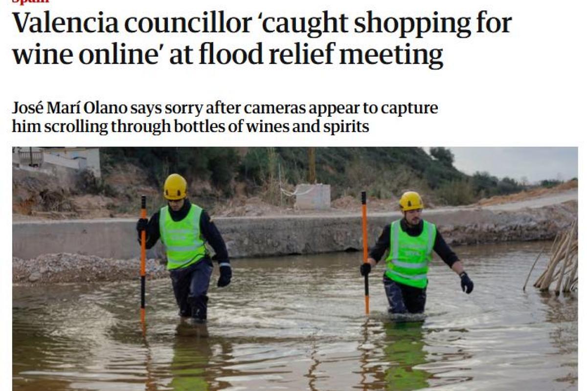 Rara vez un debate en un pleno local capta la atención de medios internacionales. Pero esta vez el asunto es diferente. El periódico británico The Guardian lleva destacado en su página web la polémica que involucra al concejal del PP en Valencia José Marí Olano, a quien pillaron comprando vino por internet mientras se debatía sobre la DANA.