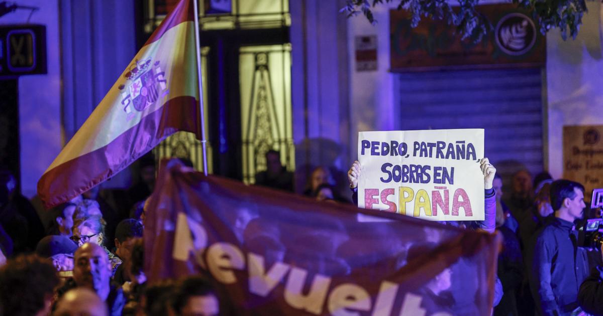 En un mensaje compartido en la cuenta de X de la organización juvenil Revuelta, convocante de las protestas, se explica así lo sucedido: "Tras las campanadas, dos manifestantes colgaron una piñata gigante del golpista Pedro Sánchez, que había pasado los habituales controles policiales en las entradas a Ferraz, rellena de turrones para golpearla. Fin de la historia".