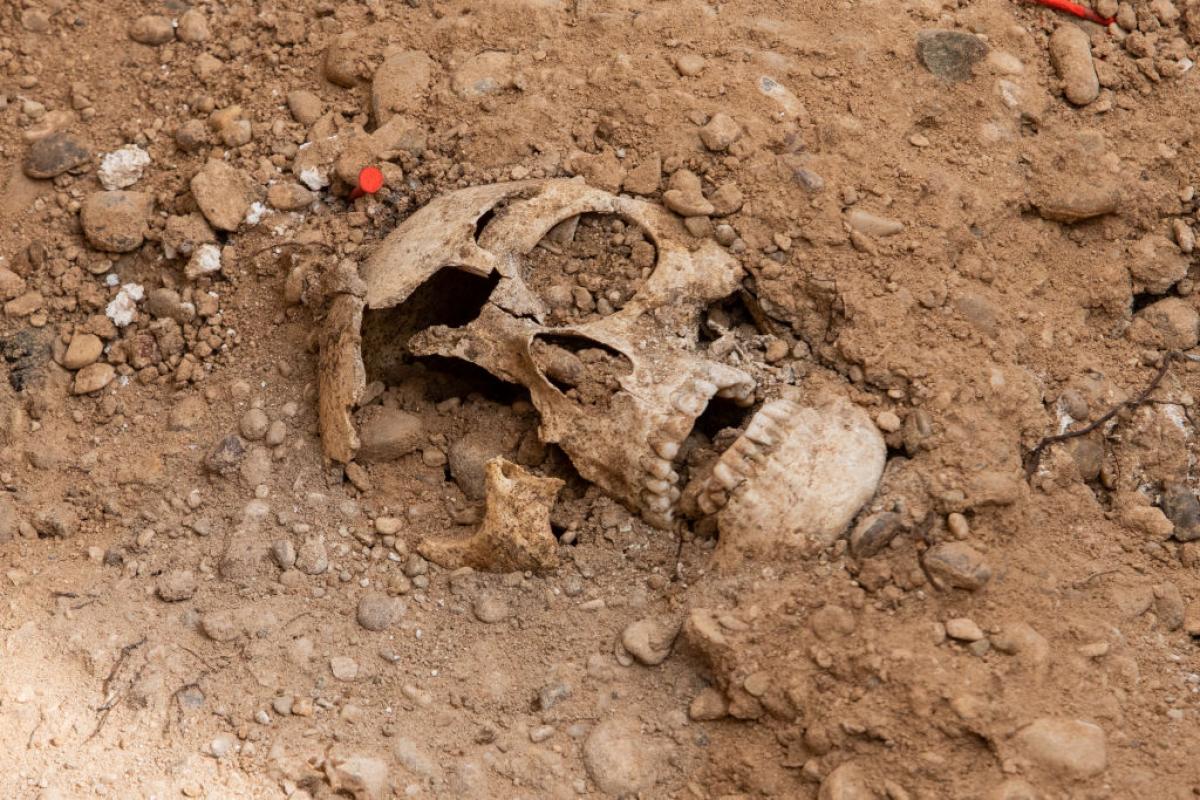 Restos humanos en una fosa común del cementerio de El Carmen de Valladolid, excavada en abril de 2022.Aldara Zarraoa / Getty Images