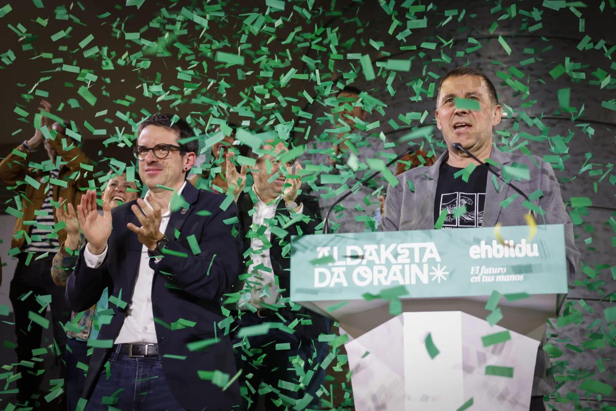 "El trabajo que hemos hecho ha dado sus frutos, estamos orgullosos, y mañana al tajo. Las siguientes son las elecciones europeas, para ser la primera fuerza en Euskadi y Navarra", manifestó por su parte Otegi en la misma celebración.