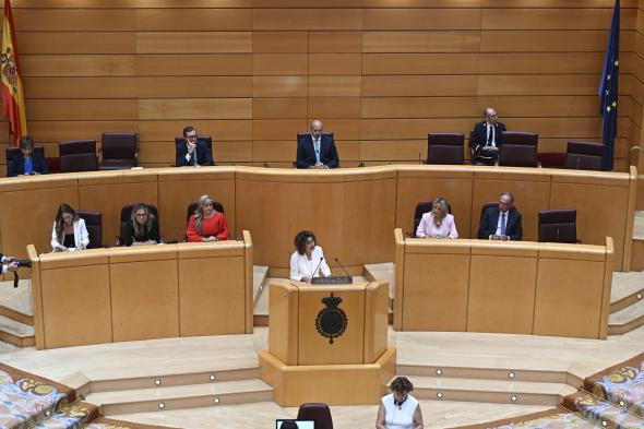 Los insultos fueron recriminados en el mismo momento por el presidente del Senado, Pedro Rollán, del PP, y tras el discurso de Montero ha sido el PSOE quien ha reprochado ese comportamiento, pidiendo bajar el tono.
