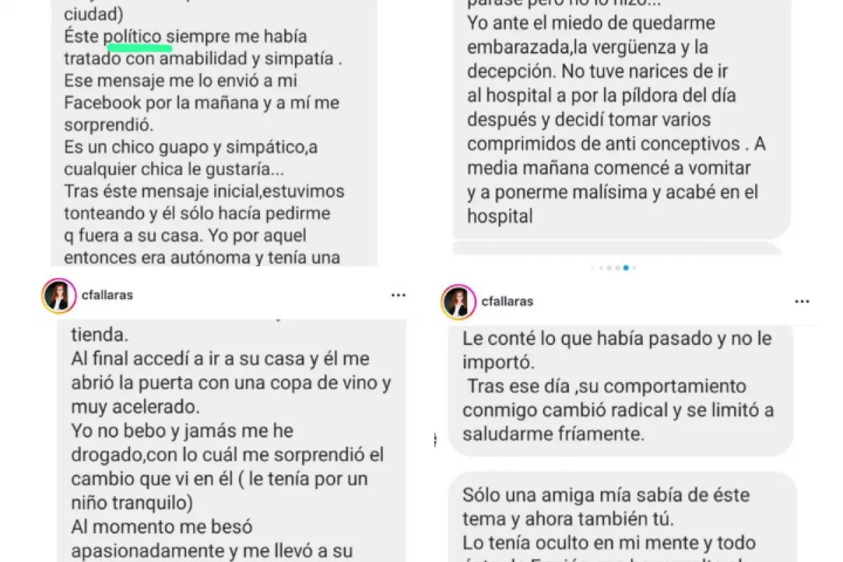 Según el testimonio, que no indica la identidad del político, los hechos ocurrieron tras asistir la mujer a la celebración en el Palacio de Congresos de la capital pacense del 140 aniversario del PSOE y la agredida tuvo una relación sexual tras ser invitada a la vivienda del agresor. Según relata, la penetró y eyaculó sin consentimiento, pese a que la mujer le dijo que usara un preservativo.