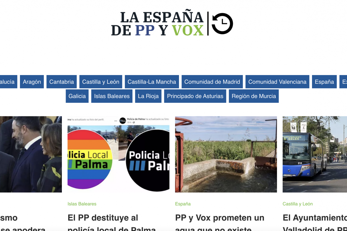 La página, laespañadeppvox.es, es un agregador de noticias de distintos medios —la mayoría, de izquierdas— en la que se recogen las distintas medidas que han llevado acabo los gobiernos de coalición entre el partido de Alberto Núñez Feijóo y el de Santiago Abascal.
