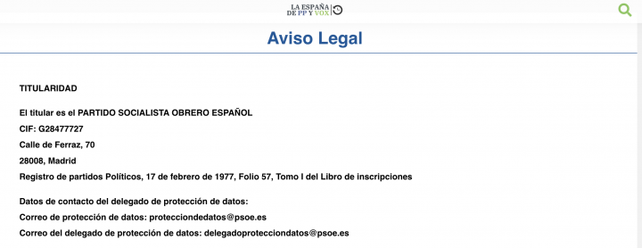 Como se puede ver en el Aviso Legal de la página, el titular de la web es el PSOE: