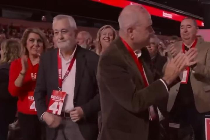 El aplauso lo ha pedido el líder del PSOE de Andalucía y presidente del 41º Congreso Federal que se celebra este fin de semana en Sevilla, Juan Espadas. En un sonoro aplauso, la primera en ponerse en pie ha sido la ex presidenta de la Junta de Andalucía, Susana Díaz, sentaba junto a ambos dirigentes socialistas. "Gracias Manolo, gracias Pepe", ha indicado Espadas reparando así de manera pública a ambos a la par que ha agradecido su trabajo "como servidores públicos, por lo que habéis hecho por Andalucía". También ha extendido este reconocimiento a la exministra Magdalena Álvarez, que ha estado presente en este congreso federal.