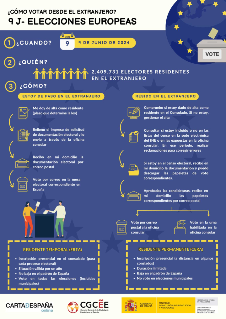 Se trata de la primera vez que los electores españoles residentes en el exterior voten en unas elecciones europeas tras la supresión del voto rogado, "lo que supone que podrán ejercer su derecho sin necesidad de solicitud previa", explica el Ministerio de Inclusión, Seguridad Social y Migraciones en su página web. Eso sí, hay que tener en cuenta que el procedimiento de voto cambia en función de si se reside fuera de España de forma temporal o permanente.