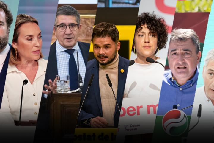 — Patxi López (PSOE), Cuca Gamarra (PP), Iván Espinosa de los Monteros (Vox), Aina Vidal (Sumar), Aitor Esteban (PNV), Gabriel Rufián (Esquerra Republicana) y Óscar Matute (EH Bildu) han expuesto sus políticas en los cuatro bloques tratados en el debate electoral de RTVE de este jueves.