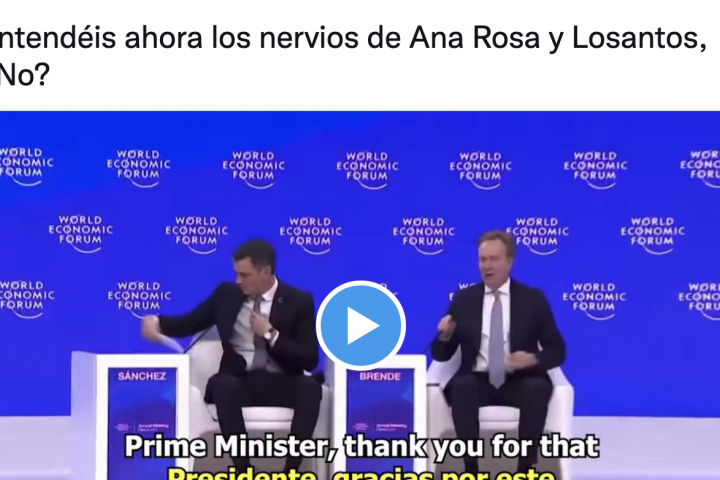 La presencia y las palabras de Pedro Sánchez en el Foro de Davos siguen dando que hablar después de varios días. El presidente del Gobierno de España dejó un discurso de poco más de dos minutos que fue muy aplaudido en Twitter por usuarios de varios partidos políticos.
