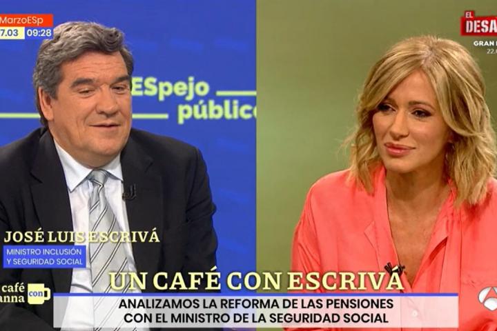 El ministro de Inclusión y Seguridad Social, José Luis Escrivá, ha sido entrevistado este viernes por Susanna Griso en Espejo Público y, tras ponerle varias declaraciones suyas, él no ha dudado en frenar a la presentadora y hacer un matiz muy importante.