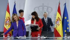 'Se acabó' no sólo ha sido un grito. Los acordes de la célebre canción de María Jiménez han servido de pistoletazo de salida a la principal manifestación de Madrid, donde el llamamiento de la Comisión 8M ha recorrido el trayecto entre Atocha y Colón con buena parte del Gobierno presente. Figuras como Teresa Ribera, Pilar Alegría, Ana Redondo o Fernando Grande-Marlaska han participado de un evento muy animoso que ha llenado la capital de gritos inclusivos por "los derechos de todas y todes". Más de 30.000 personas, según Delegación del Gobierno, cifras que las organizadoras disparaban a varios cientos de miles.