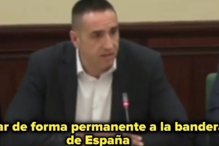 En su discurso, Delgado se alegra de que Vox haya pensado con esta propuesta en los mostoleños "que trabajan 8, 9 y 10 horas, la mayoría de clase obrera y con rentas ajustadas, y levantar un punto de homenaje a la bandera española es una preocupación que recorre todos los negocios desde las pescaderías, hasta las academias de inglés, los videoclubs, hasta los gimnasios…”.