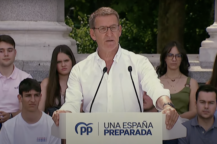 El presidente del PP, Alberto Núñez Feijóo, intervino este domingo en un mitin de su partido celebrado en el céntrico parque del Retiro de Madrid, donde reunió a varios de los 'barones' de la formación, entre ellos a Isabel Díaz Ayuso, presidenta de la Comunidad de Madrid, que logró mayoría absoluta en las autonómicas del 28 de mayo.