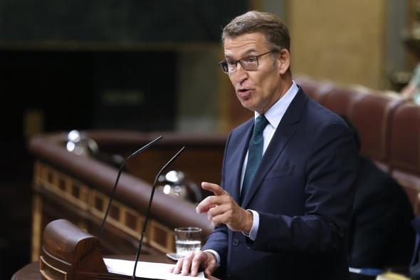 Antes, Feijóo ha instado al presidente del Gobierno en funciones y candidato socialista, Pedro Sánchez, a subir a la tribuna de oradores para responder si está de acuerdo con aprobar una amnistía y avanzar hacia el referéndum, como le reclaman al PSOE los independentistas catalanes a cambio de su 'sí' a Sánchez.