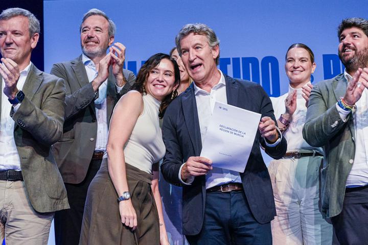 El presidente del PP, Alberto Núñez Feijóo, presentó este domingo un documento denominado Declaración de Murcia que no es otra cosa que las nuevas líneas generales del PP respecto a la inmigración, en un momento de extrema pugna con Vox por liderar el discurso antimigratorio.