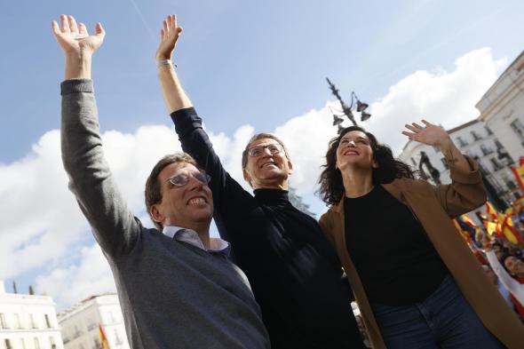 El dirigente popular ha estado acompañado de los expresidentes Mariano Rajoy y José María Aznar, así como de algunos presidentes y presidentas de las comunidades autónomas. Todo para reiterar, como ya hizo en otras concentraciones, que "lo que importa es reprobar la mentira" y que "nadie sea más que nadie".