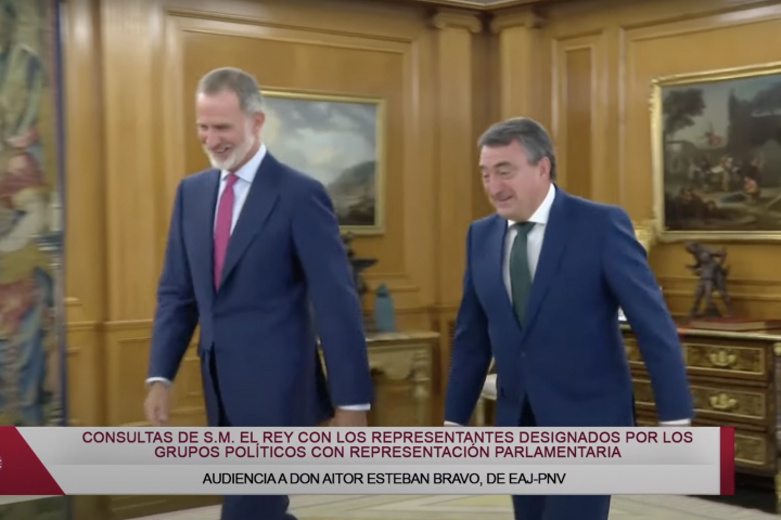 Esteban fue el penúltimo de los portavoces políticos que pasaron por el despacho del monarca y el diputado nacionalista vasco, un veterano ya en estas lides, dejó claro al rey que no va a apoyar al candidato del PP, Alberto Núñez Feijóo, por su dependencia de la extrema derecha —Vox—, pero también que todavía su apoyo a Pedro Sánchez, presidente en funciones y candidato del PSOE, no está cerrado.