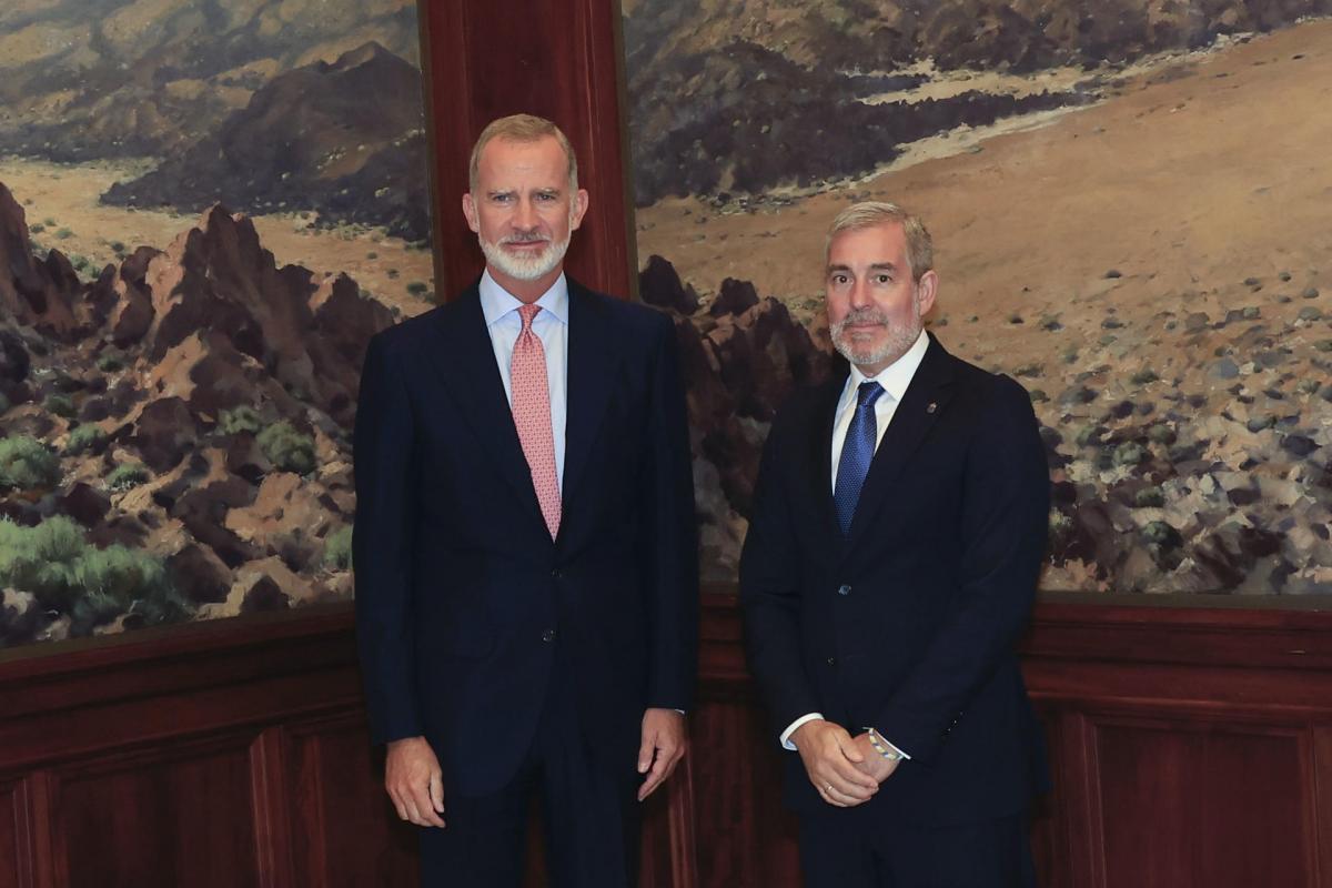 El monarca, que ha estado acompañado por el ministro de la Presidencia, Félix Bolaños, ha reafirmado su admiración con el pueblo canario porque "se une aún más" en las dificultades y en ese momento, "da lo mejor de sí".