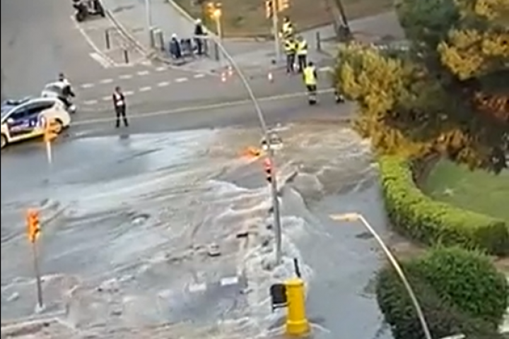 Una gran fuga de agua en Barcelona causa afectaciones en vías y en el tráfico