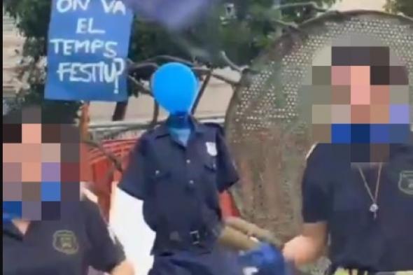 "El Ayuntamiento expresa el apoyo a los cuerpos de seguridad y manifiesta el rechazo del contenido del acto organizado por un grupo de la colla dels Blaus en la Fiesta Major", reza el comunicado compartido en la red social X por el consistorio.