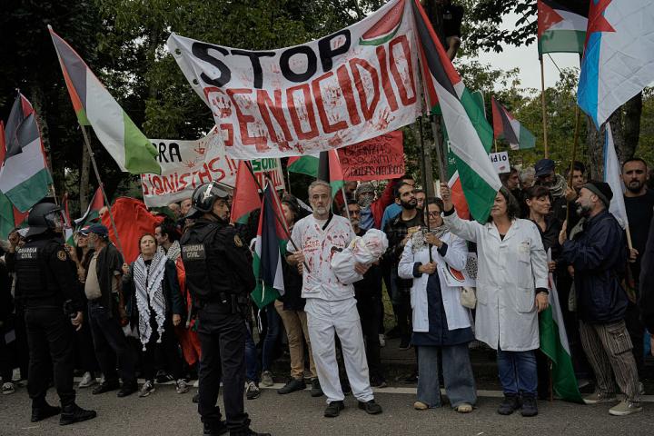 Lidon Soriano es deportista y también doctora en Ciencias de la Actividad Física y el Deporte. Con tal currículum, sería extraño suponer que guarda algún tipo de antipatía hacia el deporte. Pero es que además de todo lo anterior, Soriano, quien también dio el txupinazo de este año, es una de las portavoces de la Plataforma para el Boicot Deportivo a Israel, desde donde se coordinan a nivel estatal las acciones de protesta no violenta en cada etapa de La Vuelta. ¿Quiere Soriano acabar con la carrera ciclista, que no se produzca? La respuesta resumida es "no". La ampliada la cuenta ella misma en conversación telefónica con El HuffPost. "Nuestro objetivo en ningún momento ha sido el de parar La Vuelta, sino el de mostrar el apoyo al pueblo palestino y su lucha por acabar con la ocupación, con el apartheid. Queremos hacer presión a nuestros Gobiernos para que detengan el genocidio. La mayoría de las compañeras que organizamos las protestas somos deportistas, claro que defendemos el deporte y las competiciones, pero no que se utilice para blanquear un genocidio, una absoluta barbaridad. Lo que pedíamos y pedimos era la expulsión de Israel justamente para que existiera una competición limpia, bonita, que permitiese a la gente salir en masa a aplaudir", relata.