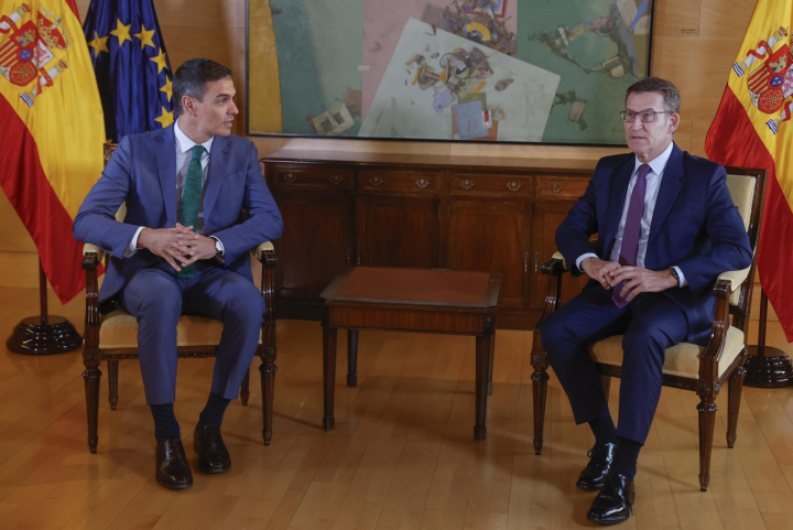Quienes despachan con el presidente salen con el convencimiento de que hará todo lo que esté en su mano para que la legislatura eche a andar. “Dentro de la Constitución”, apostilla siempre Pedro Sánchez cuando le preguntan por las negociaciones con los independentistas. En el Palacio Real, en los tradicionales corrillos posteriores al desfile por la Fiesta Nacional, todos los los altos representantes del Estado situaban al socialista en la Moncloa y a Alberto Núñez Feijóo en los escaños de la oposición. “No especulemos con que vaya a haber elecciones”, reclamó Sánchez a los presentes.