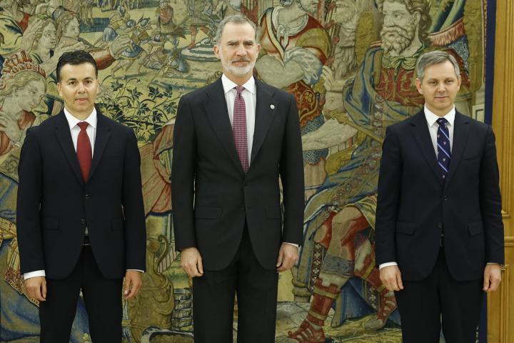 Los nuevos ministros de Industria, Comercio y Turismo, Héctor Gómez, y de Sanidad, José Manuel Miñones, han prometido este martes el cargo en un acto en el Palacio de la Zarzuela ante el rey Felipe VI, horas antes de participar esta mañana en su primera reunión del Consejo de Ministros.