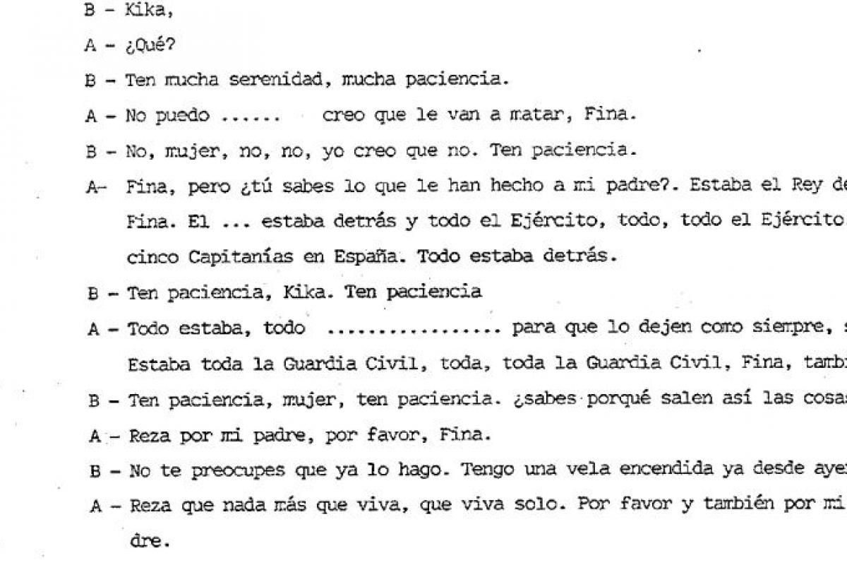 Entre las llamadas, llama la atención una entre Kika, una de las hijas de Tejero, y su suegra, Fina. A ella le pide que rece por su padre. En ese momento, la familia no ha hablado con él y tiene miedo del desenlace, porque las negociaciones finales para salir del Congreso están en marcha.