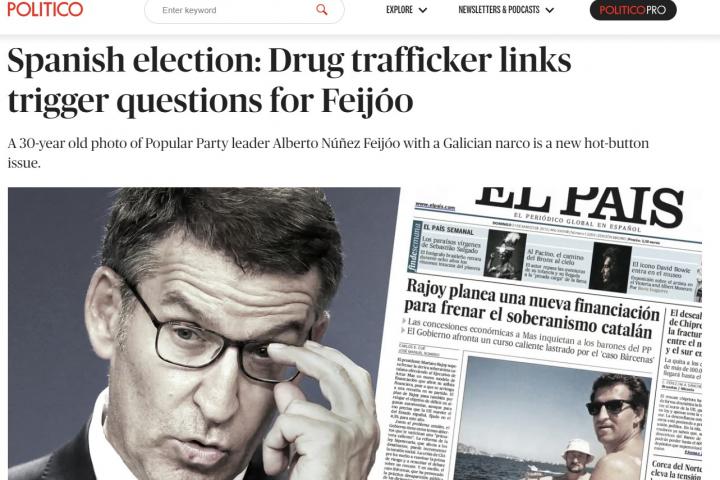 Las fotografías que más lamenta haberse hecho Feijóo saltan a la prensa internacional a escasos días de las elecciones del 23-J. El diario Politico, uno de los más influyentes a nivel mundial, ha recogido en su versión online en Europa, la "controvertida" historia sobre la "amistosa" relación entre el candidato del PP y el narcotraficante Marcial Dorado.